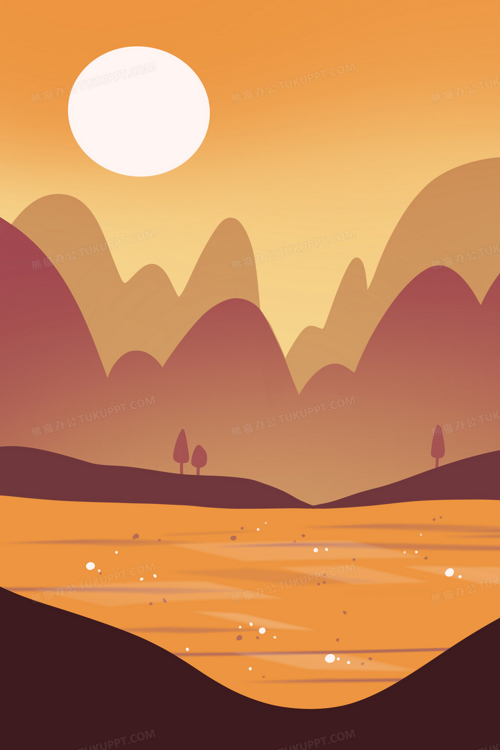 本作品内容为橘色秋日立秋黄昏手绘扁平插画背景素材, 格式为 psd, 大小12 MB, 图片尺寸为3543 x 5315, 作品中背景图片无需修改, 源文件无水印,可以直接使用, 欢迎使用熊猫办公。 如认为平台内容涉嫌侵权,可通过邮件:tousu@tukuppt.com提出书面通知,我们将及时处理。