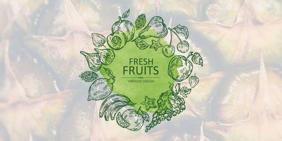 本作品内容为绿色小清新风瓜果蔬菜背景, 格式为 ai, 大小82 MB, 图片尺寸为4725 x 2363, 作品中背景图片无需修改, 源文件无水印,可以直接使用, 欢迎使用熊猫办公。 如认为平台内容涉嫌侵权,可通过邮件:tousu@tukuppt.com提出书面通知,我们将及时处理。