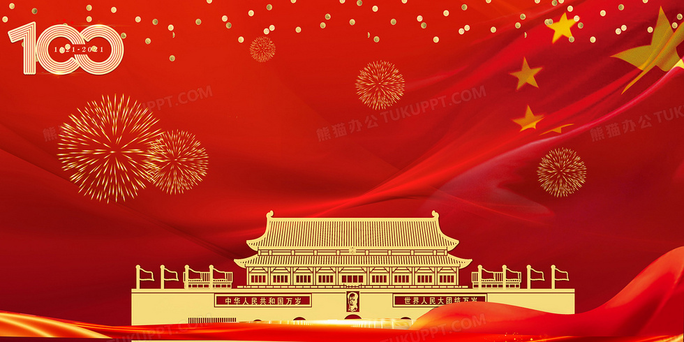 本作品内容为红色系简约大气建党100周年背景, 格式为 psd, 大小53 MB, 图片尺寸为4724 x 2362, 作品中背景图片无需修改, 源文件无水印,可以直接使用, 欢迎使用熊猫办公。 如认为平台内容涉嫌侵权,可通过邮件:tousu@tukuppt.com提出书面通知,我们将及时处理。