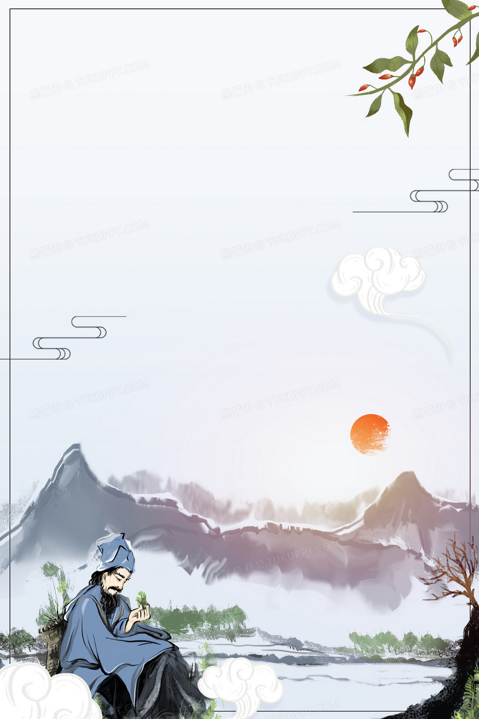 本作品内容为中医传统文化中国风世界传统医药日背景, 格式为 psd, 大小35 MB, 图片尺寸为3543 x 5315, 作品中背景图片无需修改, 源文件无水印,可以直接使用, 欢迎使用熊猫办公。 如认为平台内容涉嫌侵权,可通过邮件:tousu@tukuppt.com提出书面通知,我们将及时处理。