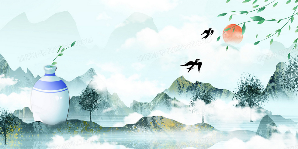 本作品内容为小清新中国风瓷器山水背景, 格式为 psd, 大小65 MB, 图片尺寸为4724 x 2362, 作品中背景图片无需修改, 源文件无水印,可以直接使用, 欢迎使用熊猫办公。 如认为平台内容涉嫌侵权,可通过邮件:tousu@tukuppt.com提出书面通知,我们将及时处理。