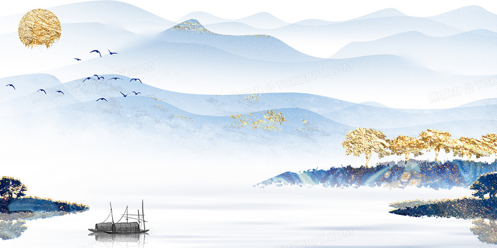 本作品内容为简约鎏金中国风山水背景, 格式为 psd, 大小59 MB, 图片尺寸为4724 x 2362, 作品中背景图片无需修改, 源文件无水印,可以直接使用, 欢迎使用熊猫办公。 如认为平台内容涉嫌侵权,可通过邮件:tousu@tukuppt.com提出书面通知,我们将及时处理。