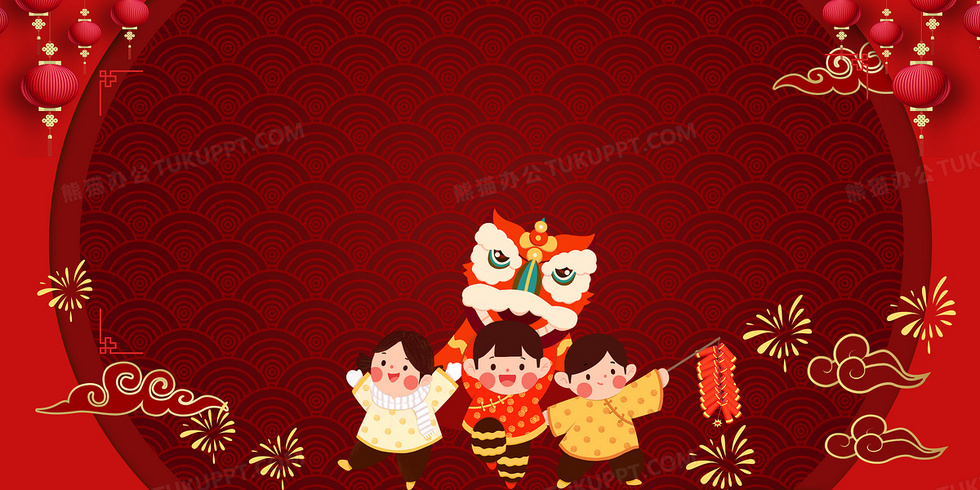 本作品内容为新年传统习俗舞狮红色背景, 格式为 psd, 大小24 MB, 图片尺寸为4724 x 2362, 作品中背景图片无需修改, 源文件无水印,可以直接使用, 欢迎使用熊猫办公。 如认为平台内容涉嫌侵权,可通过邮件:tousu@tukuppt.com提出书面通知,我们将及时处理。