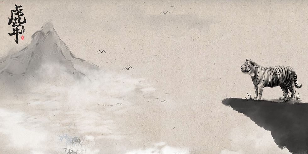 本作品内容为简约中国风水墨虎年背景, 格式为 psd, 大小76 MB, 图片尺寸为4724 x 2362, 作品中背景图片无需修改, 源文件无水印,可以直接使用, 欢迎使用熊猫办公。 如认为平台内容涉嫌侵权,可通过邮件:tousu@tukuppt.com提出书面通知,我们将及时处理。