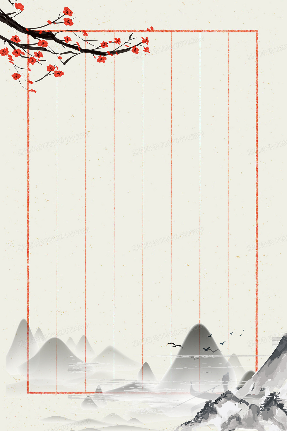 本作品内容为简约中国风信纸书法练字内页背景, 格式为 psd, 大小28 MB, 图片尺寸为3543 x 5315, 作品中背景图片无需修改, 源文件无水印,可以直接使用, 欢迎使用熊猫办公。 如认为平台内容涉嫌侵权,可通过邮件:tousu@tukuppt.com提出书面通知,我们将及时处理。