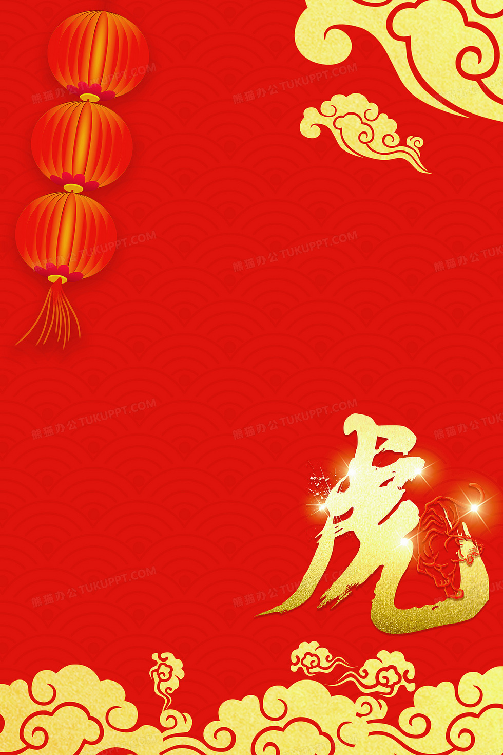 本作品内容为红金中国风虎年喜庆背景, 格式为 psd, 大小185 MB, 图片尺寸为7087 x 10630, 作品中背景图片无需修改, 源文件无水印,可以直接使用, 欢迎使用熊猫办公。 如认为平台内容涉嫌侵权,可通过邮件:tousu@tukuppt.com提出书面通知,我们将及时处理。