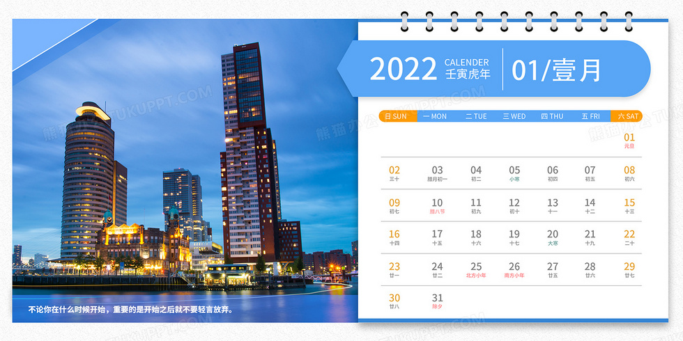 本作品内容为简约2022年虎年一月商务日历背景, 格式为 psd, 大小29 MB, 图片尺寸为4724 x 2362, 作品中背景图片无需修改, 源文件无水印,可以直接使用, 欢迎使用熊猫办公。 如认为平台内容涉嫌侵权,可通过邮件:tousu@tukuppt.com提出书面通知,我们将及时处理。