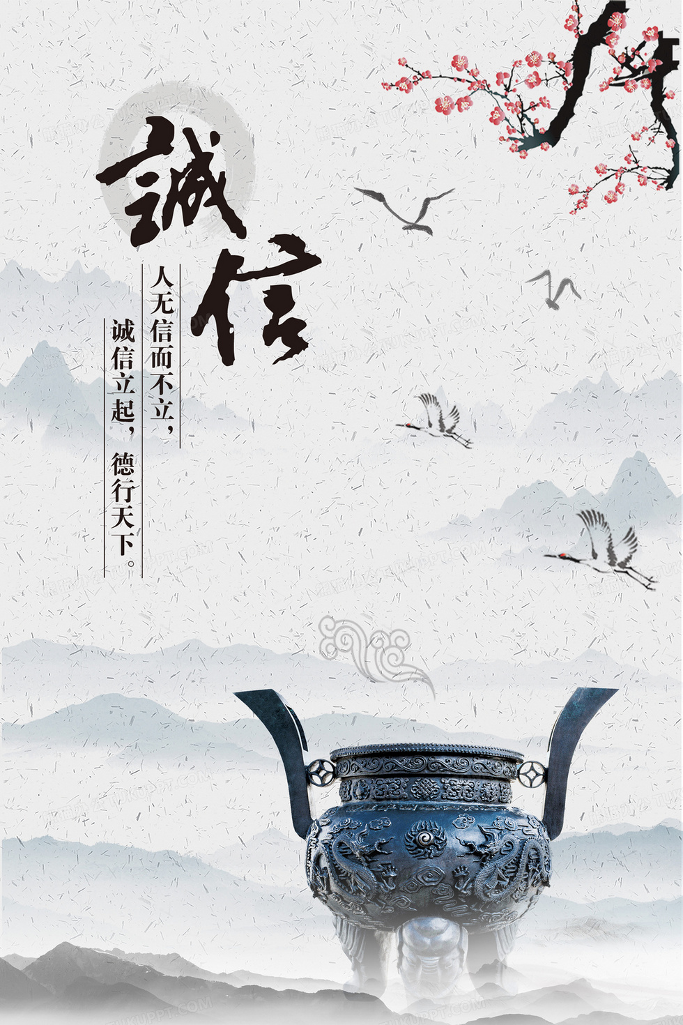 本作品内容为中国风诚信赢天下公司文化背景, 格式为 psd, 大小86 MB, 图片尺寸为3543 x 5315, 作品中背景图片无需修改, 源文件无水印,可以直接使用, 欢迎使用熊猫办公。 如认为平台内容涉嫌侵权,可通过邮件:tousu@tukuppt.com提出书面通知,我们将及时处理。
