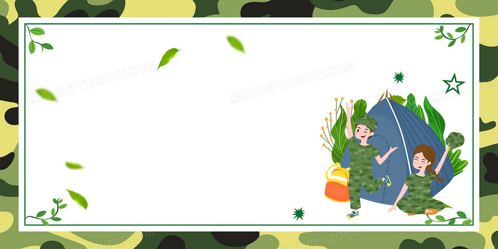 本作品内容为卡通手绘风军事夏令营边框背景, 格式为 psd, 大小17 MB, 图片尺寸为4724 x 2362, 作品中背景图片无需修改, 源文件无水印,可以直接使用, 欢迎使用熊猫办公。 如认为平台内容涉嫌侵权,可通过邮件:tousu@tukuppt.com提出书面通知,我们将及时处理。