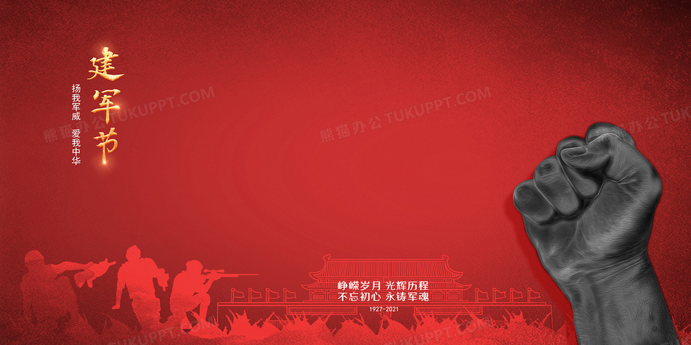 本作品内容为八一建军节复古党建拳头军人剪影背景, 格式为 psd, 大小68 MB, 图片尺寸为4724 x 2362, 作品中背景图片无需修改, 源文件无水印,可以直接使用, 欢迎使用熊猫办公。 如认为平台内容涉嫌侵权,可通过邮件:tousu@tukuppt.com提出书面通知,我们将及时处理。