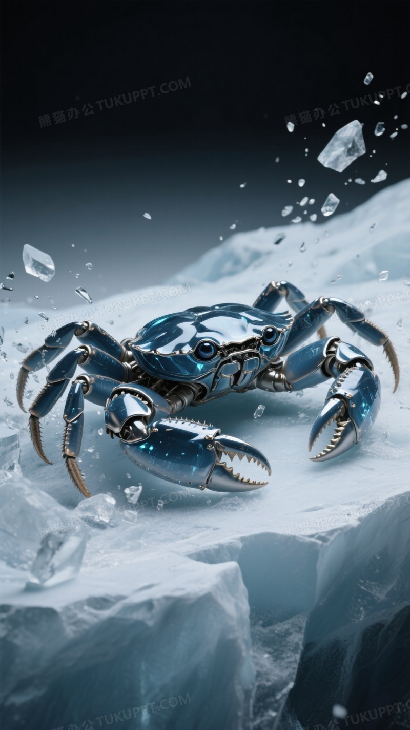本作品内容为海报一只深青色银色机械与玻璃制造的大螃蟹, 格式为 jpg, 大小1 MB, 图片尺寸为936 x 1664, 源文件无水印, 欢迎使用熊猫办公。 如认为平台内容涉嫌侵权,可通过邮件:tousu@tukuppt.com提出书面通知,我们将及时处理。