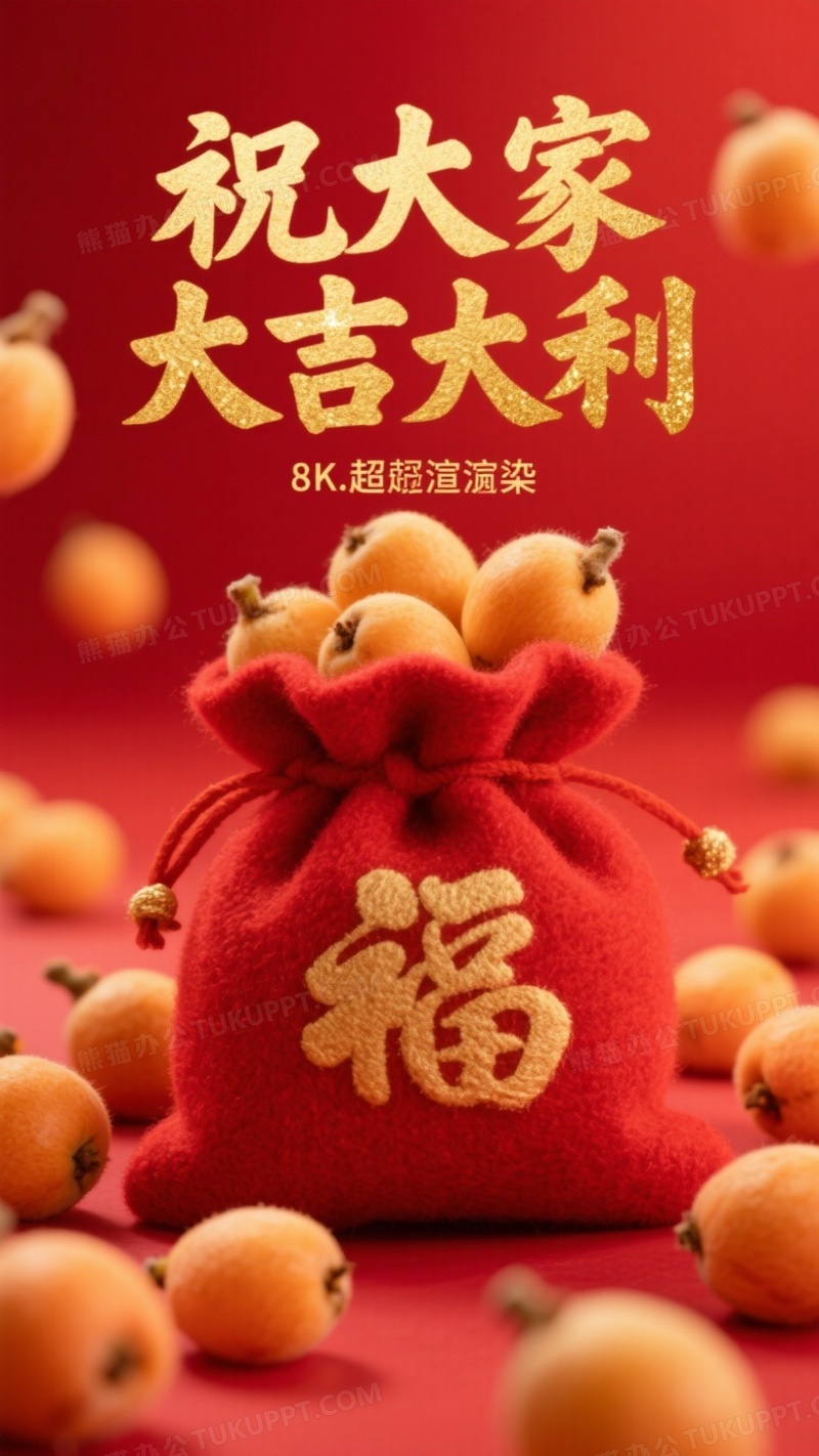 本作品内容为在红色喜庆的背景中一个有着羊毛毡质感的红色福袋格外引人注目, 格式为 jpg, 大小1 MB, 图片尺寸为936 x 1664, 源文件无水印, 欢迎使用熊猫办公。 如认为平台内容涉嫌侵权,可通过邮件:tousu@tukuppt.com提出书面通知,我们将及时处理。