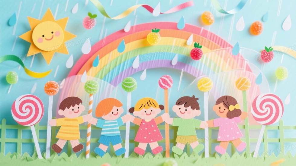 本作品内容为剪纸叠层风格童趣画面, 格式为 jpg, 大小1 MB, 图片尺寸为1664 x 936, 源文件无水印, 欢迎使用熊猫办公。 如认为平台内容涉嫌侵权,可通过邮件:tousu@tukuppt.com提出书面通知,我们将及时处理。