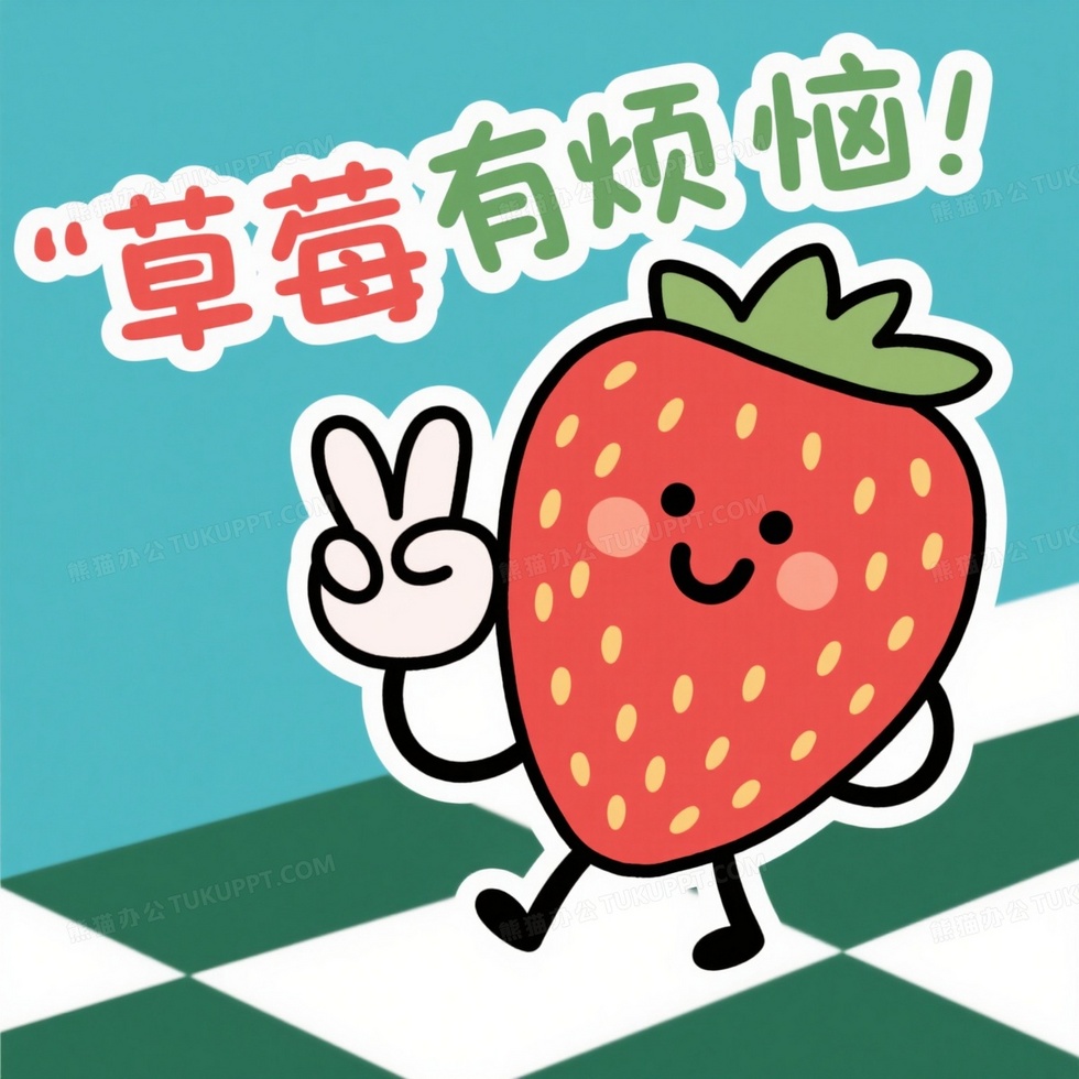 本作品内容为文字为莓有烦恼图中有一颗草莓开心的比耶, 格式为 jpg, 大小1 MB, 图片尺寸为1536 x 1536, 源文件无水印, 欢迎使用熊猫办公。 如认为平台内容涉嫌侵权,可通过邮件:tousu@tukuppt.com提出书面通知,我们将及时处理。