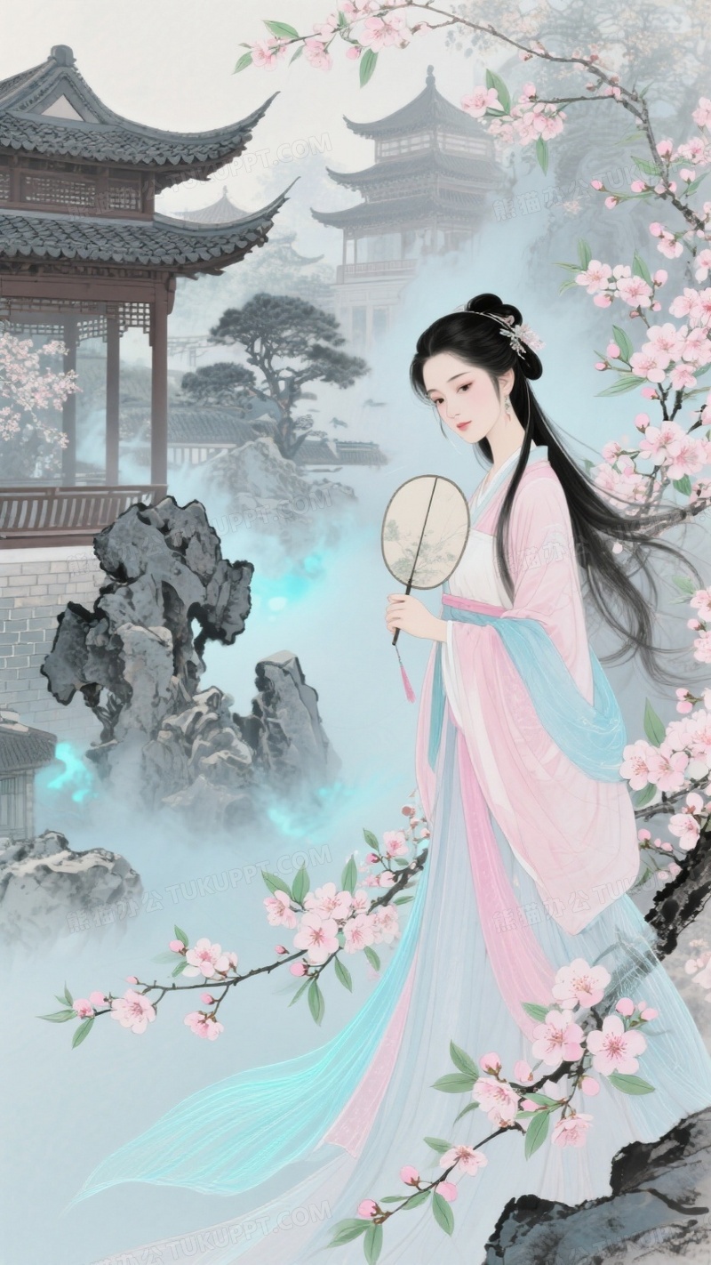 本作品内容为以下是关于美女古风的水墨画创作提示词, 格式为 jpg, 大小1 MB, 图片尺寸为936 x 1664, 源文件无水印, 欢迎使用熊猫办公。 如认为平台内容涉嫌侵权,可通过邮件:tousu@tukuppt.com提出书面通知,我们将及时处理。