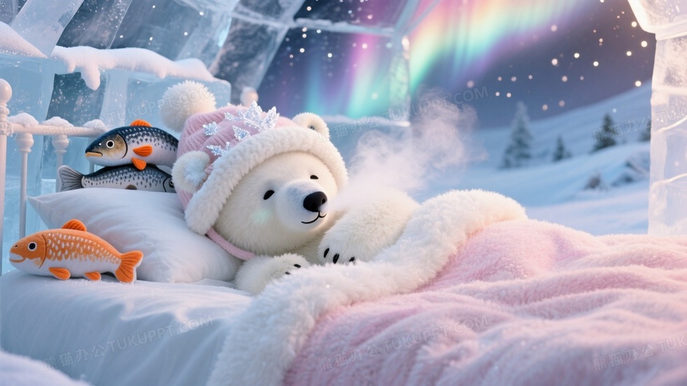 本作品内容为北极熊宝宝冬眠主题毛绒床铺漂浮在极光冰屋, 格式为 jpg, 大小1 MB, 图片尺寸为1664 x 936, 源文件无水印, 欢迎使用熊猫办公。 如认为平台内容涉嫌侵权,可通过邮件:tousu@tukuppt.com提出书面通知,我们将及时处理。
