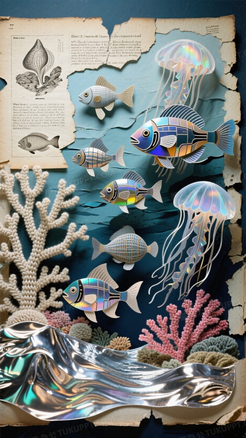 本作品内容为立体拼贴艺术海底图鉴, 格式为 jpg, 大小1 MB, 图片尺寸为936 x 1664, 源文件无水印, 欢迎使用熊猫办公。 如认为平台内容涉嫌侵权,可通过邮件:tousu@tukuppt.com提出书面通知,我们将及时处理。