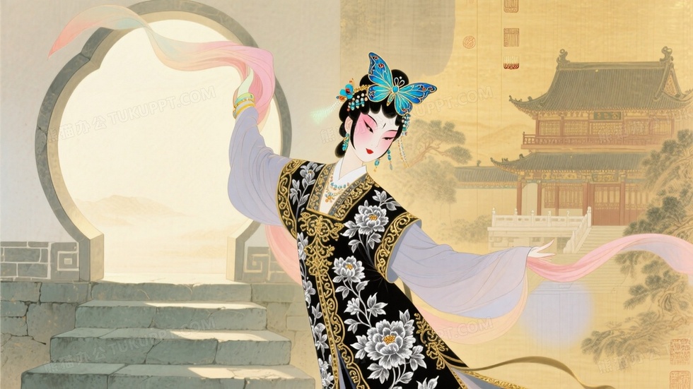 本作品内容为花旦水袖舞动中景插画, 格式为 jpg, 大小1 MB, 图片尺寸为1664 x 936, 源文件无水印, 欢迎使用熊猫办公。 如认为平台内容涉嫌侵权,可通过邮件:tousu@tukuppt.com提出书面通知,我们将及时处理。