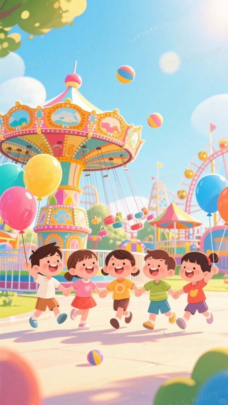 本作品内容为童趣卡通插画5个小朋友手牵手在游乐园的旋转木马旁玩丢沙包游戏, 格式为 jpg, 大小1 MB, 图片尺寸为936 x 1664, 源文件无水印, 欢迎使用熊猫办公。 如认为平台内容涉嫌侵权,可通过邮件:tousu@tukuppt.com提出书面通知,我们将及时处理。