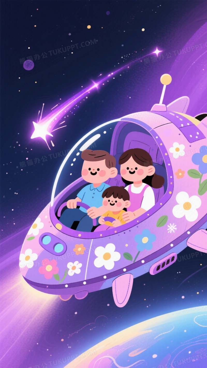 本作品内容为超可爱的卡通插画一家人坐在有花朵图案的宇宙飞船中, 格式为 jpg, 大小1 MB, 图片尺寸为936 x 1664, 源文件无水印, 欢迎使用熊猫办公。 如认为平台内容涉嫌侵权,可通过邮件:tousu@tukuppt.com提出书面通知,我们将及时处理。