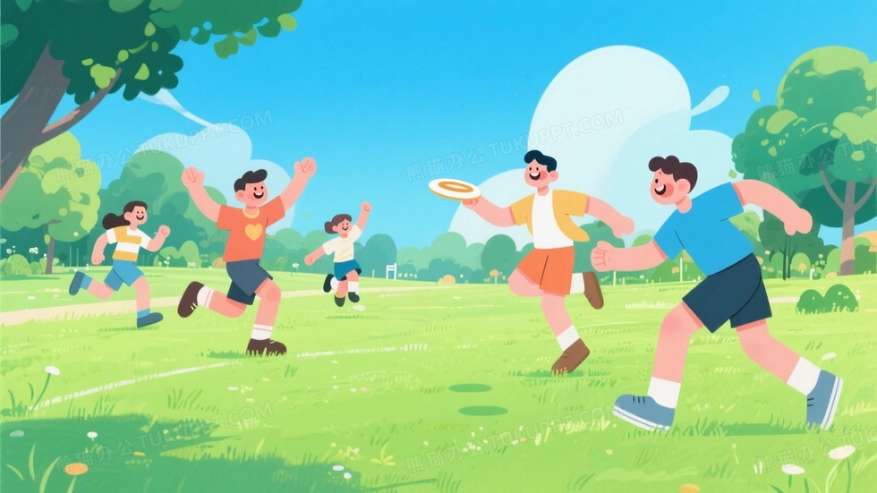 本作品内容为好看的卡通插画描绘了在公园进行飞盘运动的场景, 格式为 jpg, 大小1 MB, 图片尺寸为1664 x 936, 源文件无水印, 欢迎使用熊猫办公。 如认为平台内容涉嫌侵权,可通过邮件:tousu@tukuppt.com提出书面通知,我们将及时处理。