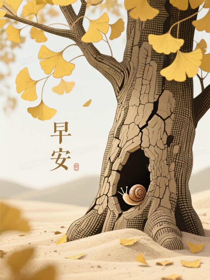 本作品内容为一棵叶子正在变黄且皲裂树干的银杏树, 格式为 jpg, 大小1 MB, 图片尺寸为1104 x 1472, 源文件无水印, 欢迎使用熊猫办公。 如认为平台内容涉嫌侵权,可通过邮件:tousu@tukuppt.com提出书面通知,我们将及时处理。