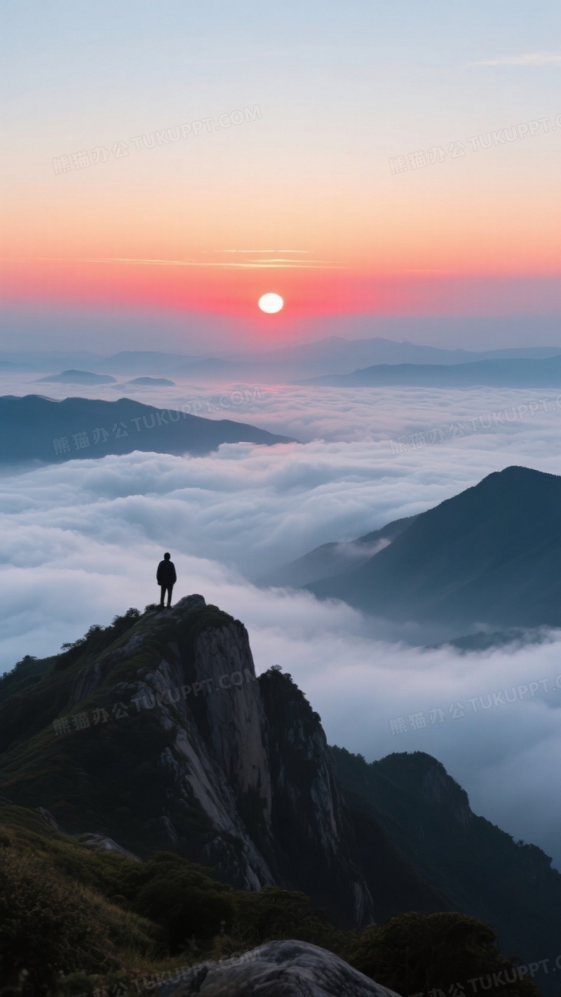 本作品内容为主题是山顶观日出场景, 格式为 jpg, 大小1 MB, 图片尺寸为936 x 1664, 源文件无水印, 欢迎使用熊猫办公。 如认为平台内容涉嫌侵权,可通过邮件:tousu@tukuppt.com提出书面通知,我们将及时处理。