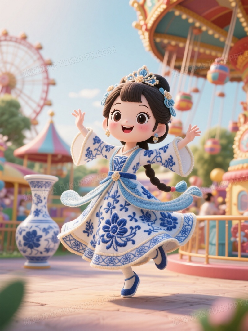 本作品内容为国风手绘立体刺绣以青花瓷为主体幻化的公主在游乐园玩耍, 格式为 jpg, 大小1 MB, 图片尺寸为1104 x 1472, 源文件无水印, 欢迎使用熊猫办公。 如认为平台内容涉嫌侵权,可通过邮件:tousu@tukuppt.com提出书面通知,我们将及时处理。