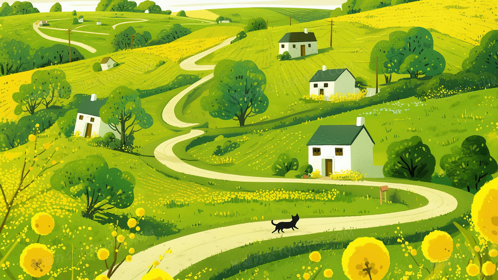 本作品内容为唯美乡村小路田园风景与小狗插画, 格式为 jpg, 大小4 MB, 图片尺寸为2912 x 1632, 源文件无水印, 欢迎使用熊猫办公。 如认为平台内容涉嫌侵权,可通过邮件:tousu@tukuppt.com提出书面通知,我们将及时处理。