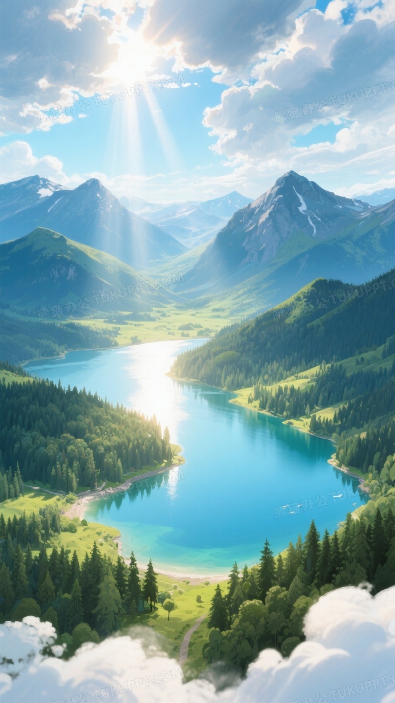 本作品内容为高清的自然风景插画采用航拍视角展现连绵的山脉, 格式为 jpg, 大小1 MB, 图片尺寸为936 x 1664, 源文件无水印, 欢迎使用熊猫办公。 如认为平台内容涉嫌侵权,可通过邮件:tousu@tukuppt.com提出书面通知,我们将及时处理。