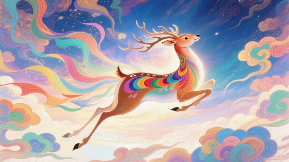 本作品内容为一只拥有九种绚丽色彩的神鹿, 格式为 jpg, 大小1 MB, 图片尺寸为1664 x 936, 源文件无水印, 欢迎使用熊猫办公。 如认为平台内容涉嫌侵权,可通过邮件:tousu@tukuppt.com提出书面通知,我们将及时处理。