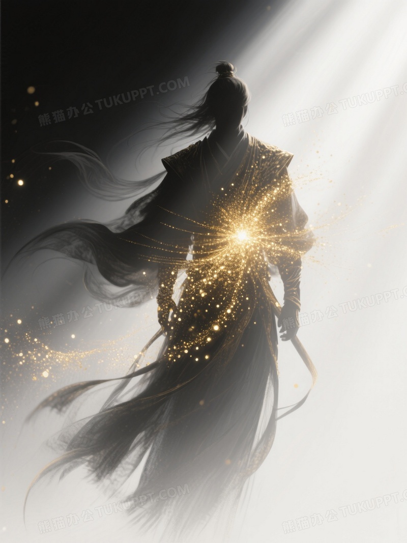 本作品内容为用极细金粒子绘制一个侠客, 格式为 jpg, 大小1 MB, 图片尺寸为1104 x 1472, 源文件无水印, 欢迎使用熊猫办公。 如认为平台内容涉嫌侵权,可通过邮件:tousu@tukuppt.com提出书面通知,我们将及时处理。