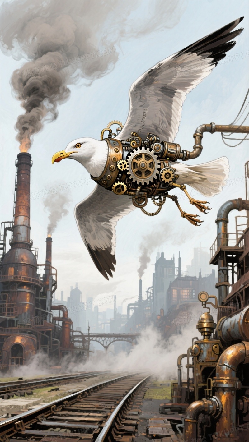 本作品内容为蒸汽朋克风格插画机械海鸥在蒸汽弥漫的天空中飞行, 格式为 jpg, 大小1 MB, 图片尺寸为936 x 1664, 源文件无水印, 欢迎使用熊猫办公。 如认为平台内容涉嫌侵权,可通过邮件:tousu@tukuppt.com提出书面通知,我们将及时处理。