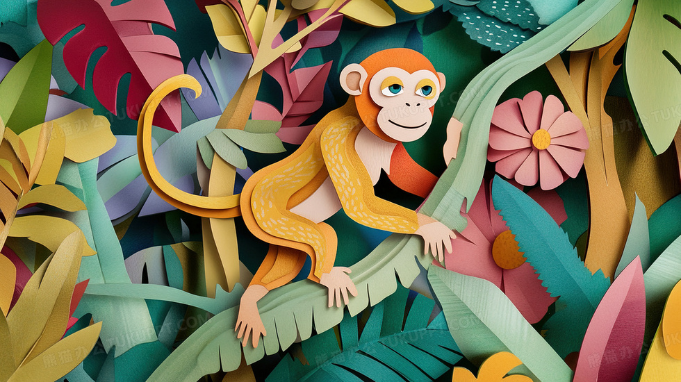 本作品内容为剪纸风森林里可爱的动物猴子插画, 格式为 jpg, 大小7 MB, 图片尺寸为2912 x 1632, 源文件无水印, 欢迎使用熊猫办公。 如认为平台内容涉嫌侵权,可通过邮件:tousu@tukuppt.com提出书面通知,我们将及时处理。
