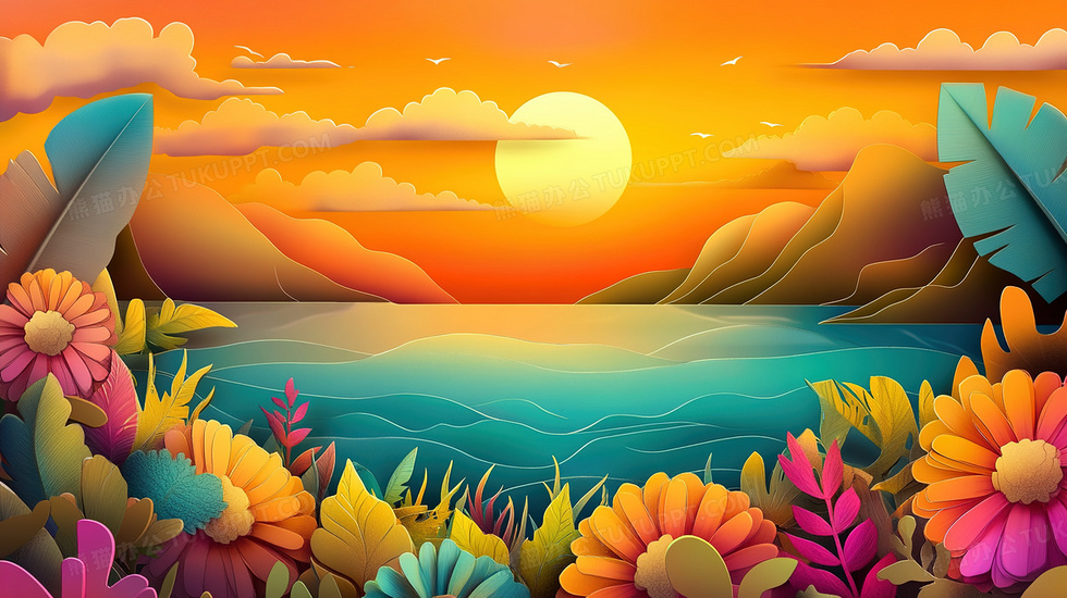 本作品内容为剪纸风户外美丽的日出插画, 格式为 jpg, 大小6 MB, 图片尺寸为2912 x 1632, 源文件无水印, 欢迎使用熊猫办公。 如认为平台内容涉嫌侵权,可通过邮件:tousu@tukuppt.com提出书面通知,我们将及时处理。