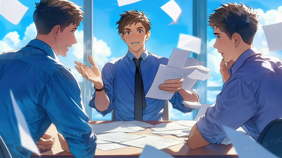本作品内容为商务打工人交流谈判插画, 格式为 jpg, 大小3 MB, 图片尺寸为2912 x 1632, 源文件无水印, 欢迎使用熊猫办公。 如认为平台内容涉嫌侵权,可通过邮件:tousu@tukuppt.com提出书面通知,我们将及时处理。