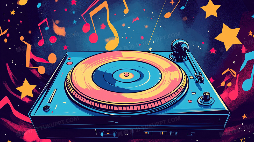本作品内容为酷炫唱片机多媒体电子产品插画, 格式为 jpg, 大小3 MB, 图片尺寸为2912 x 1632, 源文件无水印, 欢迎使用熊猫办公。 如认为平台内容涉嫌侵权,可通过邮件:tousu@tukuppt.com提出书面通知,我们将及时处理。