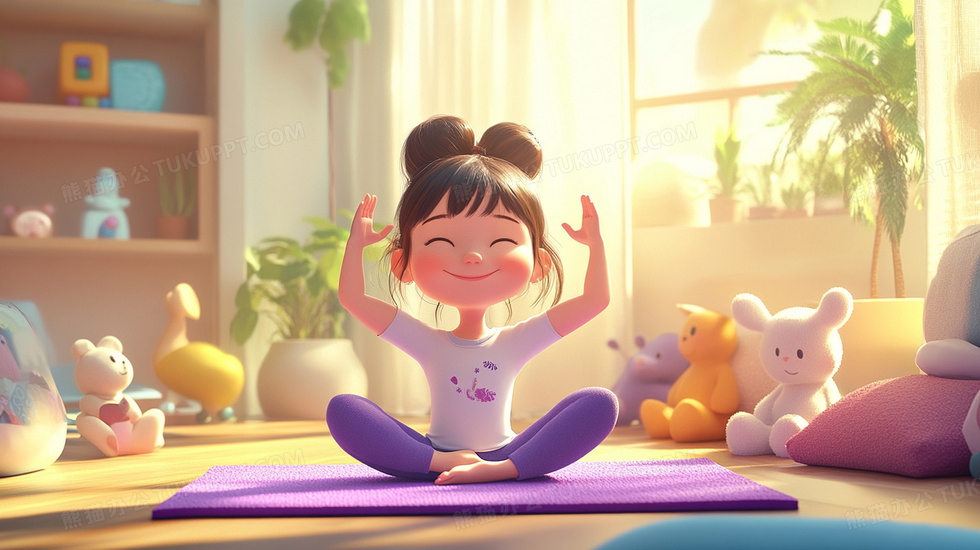 本作品内容为小女孩在家中瑜伽垫上做瑜伽卡通插画, 格式为 jpg, 大小3 MB, 图片尺寸为2912 x 1632, 源文件无水印, 欢迎使用熊猫办公。 如认为平台内容涉嫌侵权,可通过邮件:tousu@tukuppt.com提出书面通知,我们将及时处理。