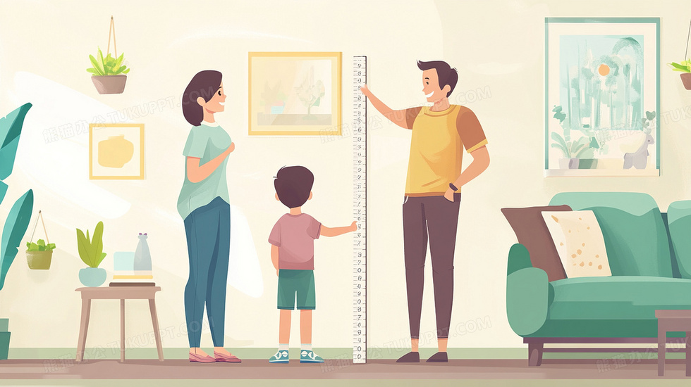 本作品内容为家中父母给孩子测量身高卡通插画, 格式为 jpg, 大小2 MB, 图片尺寸为2912 x 1632, 源文件无水印, 欢迎使用熊猫办公。 如认为平台内容涉嫌侵权,可通过邮件:tousu@tukuppt.com提出书面通知,我们将及时处理。