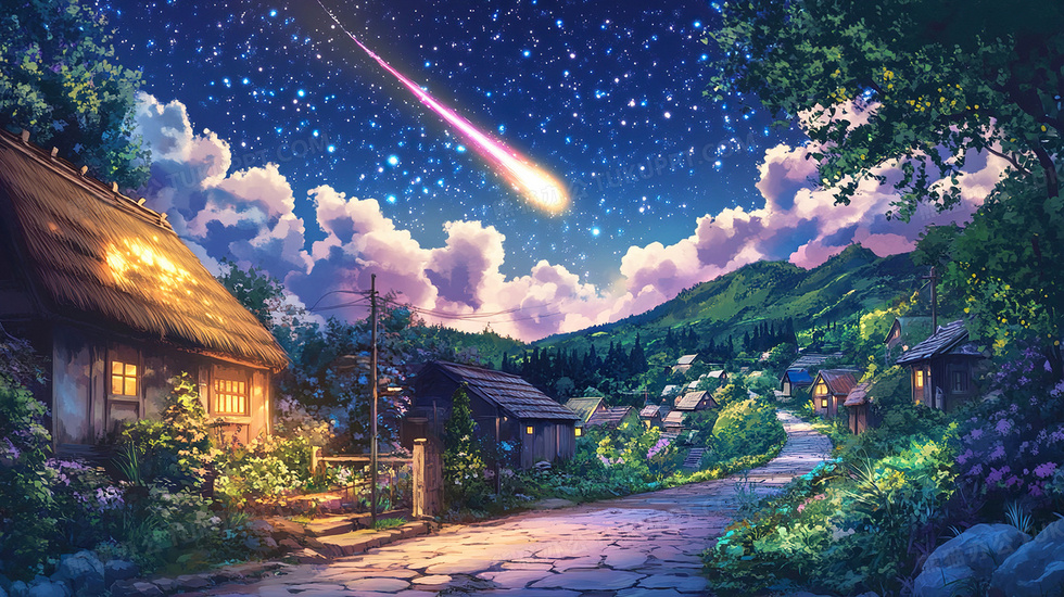 本作品内容为流星划过的夜空唯美风景插画, 格式为 jpg, 大小8 MB, 图片尺寸为2912 x 1632, 源文件无水印, 欢迎使用熊猫办公。 如认为平台内容涉嫌侵权,可通过邮件:tousu@tukuppt.com提出书面通知,我们将及时处理。