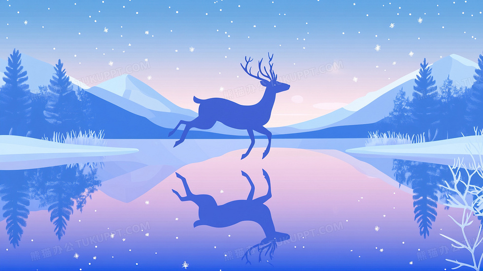 本作品内容为湖泊麋鹿影子剪影风景插画, 格式为 jpg, 大小3 MB, 图片尺寸为2912 x 1632, 源文件无水印, 欢迎使用熊猫办公。 如认为平台内容涉嫌侵权,可通过邮件:tousu@tukuppt.com提出书面通知,我们将及时处理。