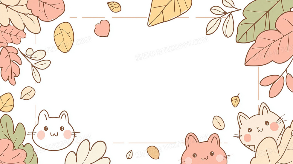 本作品内容为卡通可爱动物树叶装饰边框背景, 格式为 jpg, 大小2 MB, 图片尺寸为2912 x 1632, 作品中背景图片无需修改, 源文件无水印,可以直接使用, 欢迎使用熊猫办公。 如认为平台内容涉嫌侵权,可通过邮件:tousu@tukuppt.com提出书面通知,我们将及时处理。