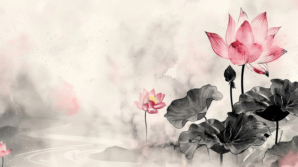 本作品内容为中国水墨风莲花荷叶背景, 格式为 jpg, 大小3 MB, 图片尺寸为2912 x 1632, 作品中背景图片无需修改, 源文件无水印,可以直接使用, 欢迎使用熊猫办公。 如认为平台内容涉嫌侵权,可通过邮件:tousu@tukuppt.com提出书面通知,我们将及时处理。