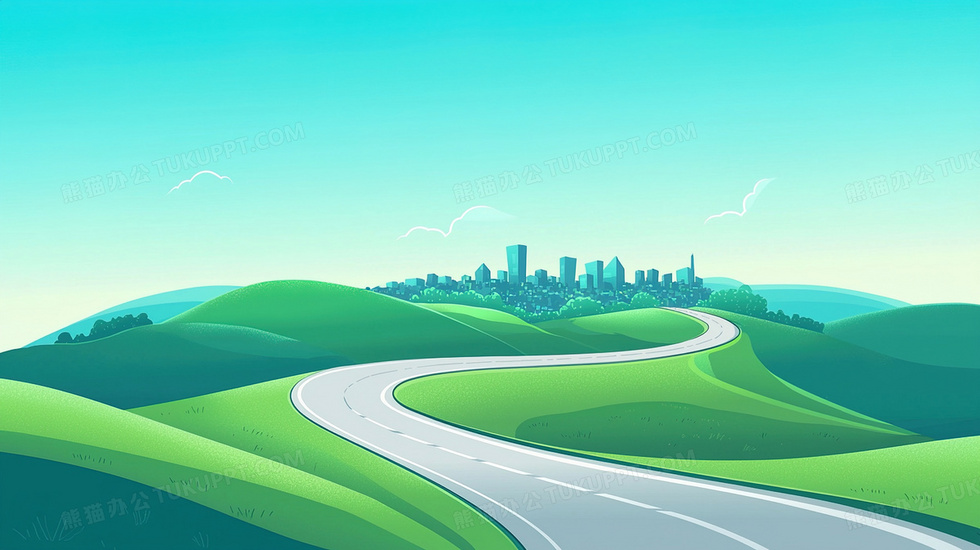 本作品内容为绿色弯曲交通道路草地卡通背景, 格式为 jpg, 大小2 MB, 图片尺寸为2912 x 1632, 作品中背景图片无需修改, 源文件无水印,可以直接使用, 欢迎使用熊猫办公。 如认为平台内容涉嫌侵权,可通过邮件:tousu@tukuppt.com提出书面通知,我们将及时处理。