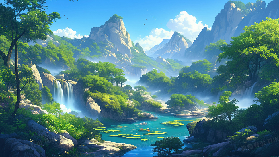 本作品内容为大自然风景美丽瀑布天空云层插画, 格式为 jpg, 大小4 MB, 图片尺寸为2912 x 1632, 源文件无水印, 欢迎使用熊猫办公。 如认为平台内容涉嫌侵权,可通过邮件:tousu@tukuppt.com提出书面通知,我们将及时处理。