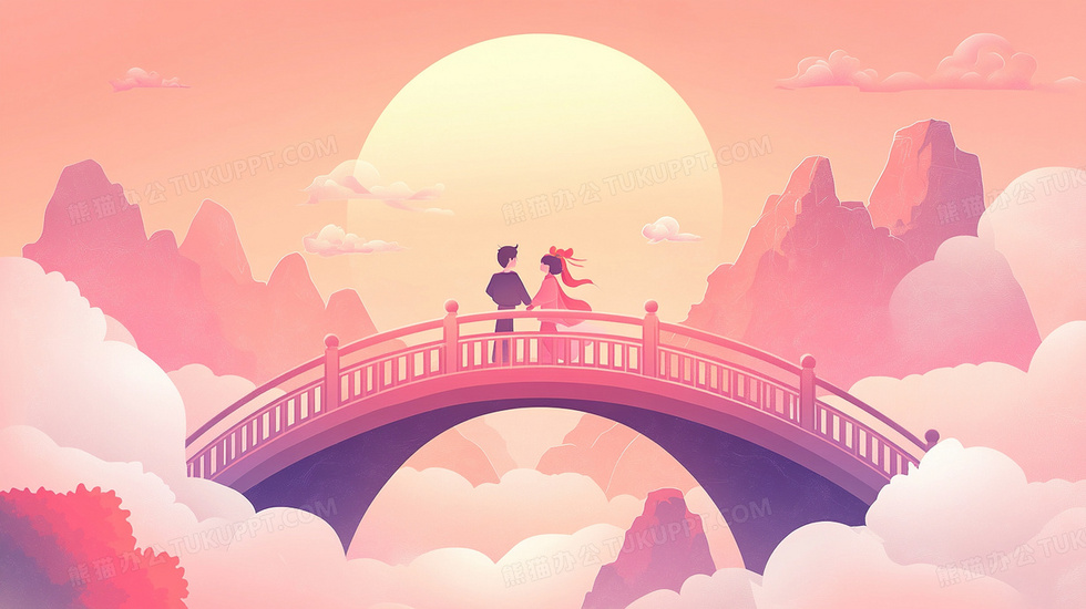 本作品内容为鹊桥牛郎织女影子剪影风景插画, 格式为 jpg, 大小3 MB, 图片尺寸为2912 x 1632, 源文件无水印, 欢迎使用熊猫办公。 如认为平台内容涉嫌侵权,可通过邮件:tousu@tukuppt.com提出书面通知,我们将及时处理。