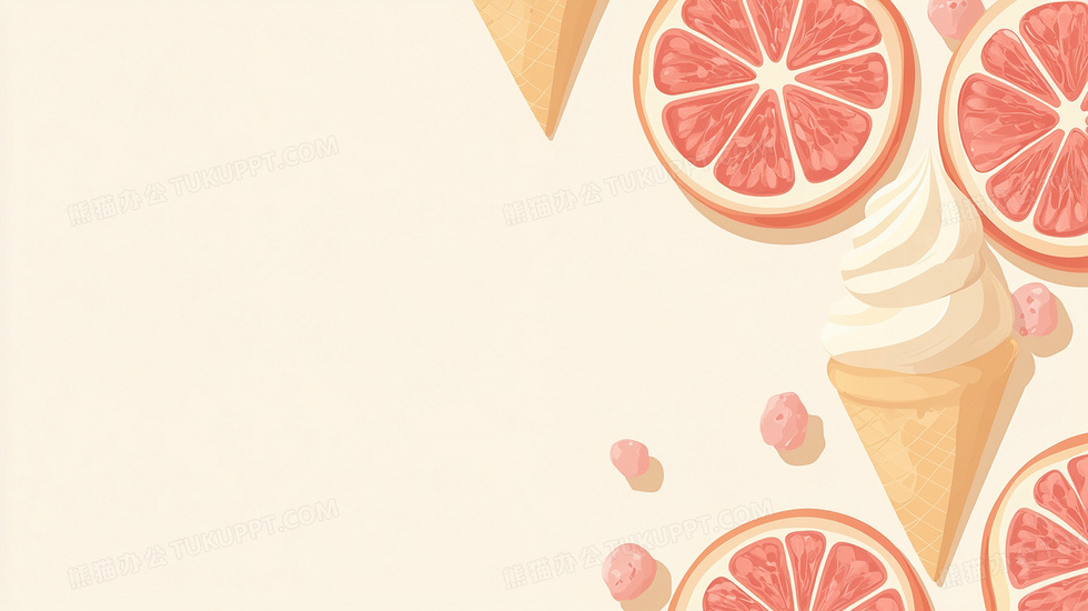 本作品内容为西柚冰淇淋简约水果文艺清新背景, 格式为 jpg, 大小2 MB, 图片尺寸为2912 x 1632, 作品中背景图片无需修改, 源文件无水印,可以直接使用, 欢迎使用熊猫办公。 如认为平台内容涉嫌侵权,可通过邮件:tousu@tukuppt.com提出书面通知,我们将及时处理。