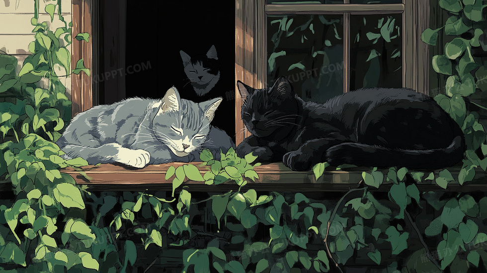 本作品内容为爬山虎窗户猫咪唯美风景门窗插画, 格式为 jpg, 大小3 MB, 图片尺寸为2912 x 1632, 源文件无水印, 欢迎使用熊猫办公。 如认为平台内容涉嫌侵权,可通过邮件:tousu@tukuppt.com提出书面通知,我们将及时处理。