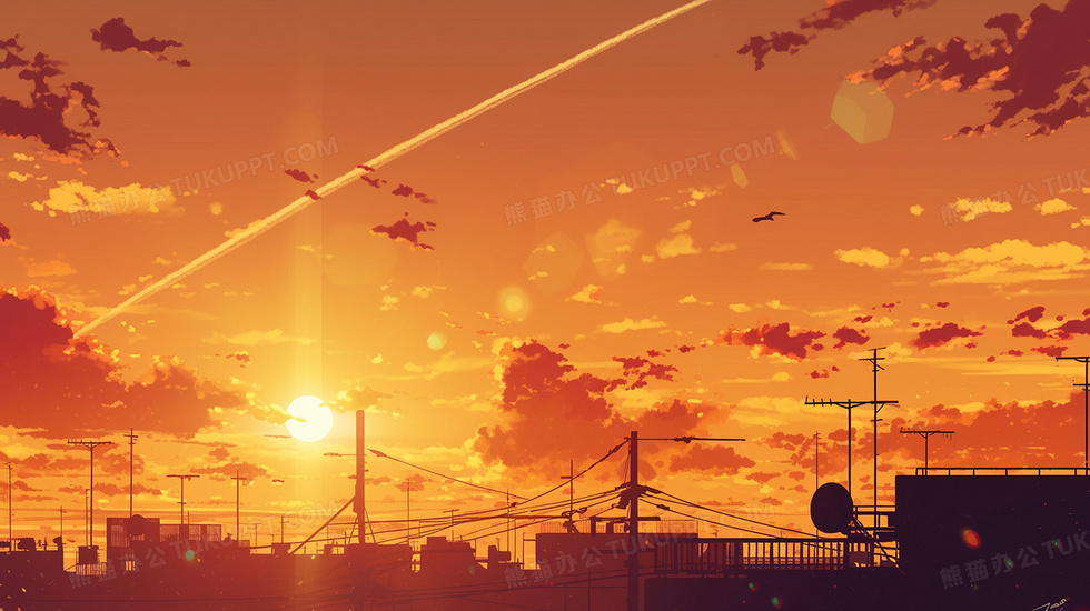 本作品内容为黄昏落日下的城市建筑美景插画, 格式为 jpg, 大小2 MB, 图片尺寸为2912 x 1632, 源文件无水印, 欢迎使用熊猫办公。 如认为平台内容涉嫌侵权,可通过邮件:tousu@tukuppt.com提出书面通知,我们将及时处理。