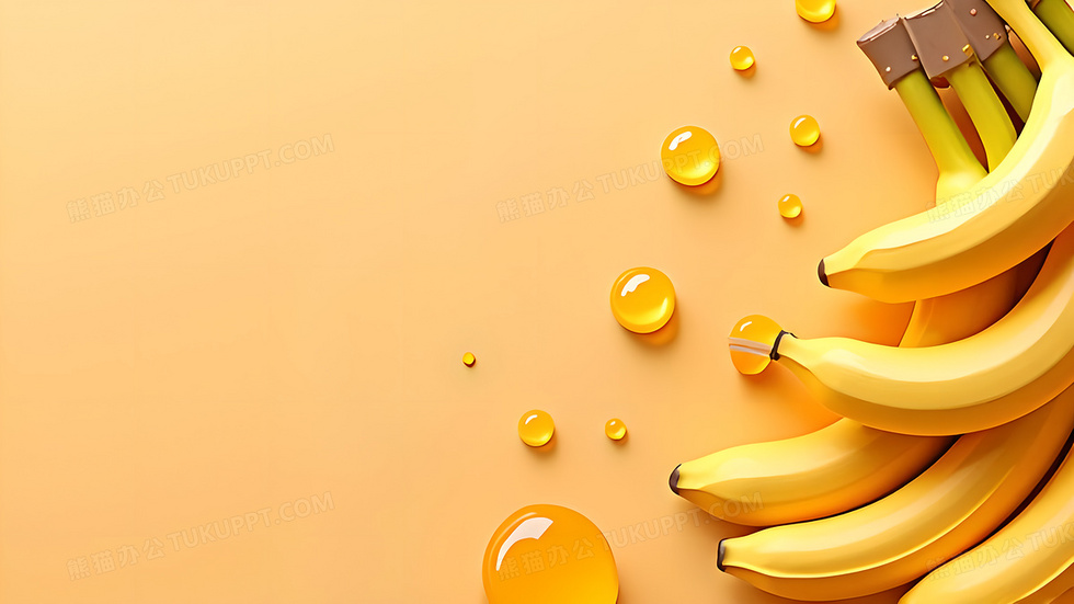 本作品内容为黄色香蕉水果背景, 格式为 jpg, 大小4 MB, 图片尺寸为3072 x 1728, 作品中背景图片无需修改, 源文件无水印,可以直接使用, 欢迎使用熊猫办公。 如认为平台内容涉嫌侵权,可通过邮件:tousu@tukuppt.com提出书面通知,我们将及时处理。